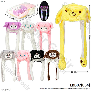 Bunny Hat Topi Karakter B/O Lampu 3 Karakter 1 Pack 10 Pcs Ktg @100