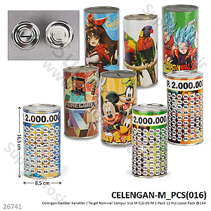 Celengan M Tanpa Tutup Gambar Karakter Nominal Campur CLG-05-M / CLG-09-M 1 Pack 12 Pcs Loose Pack @144