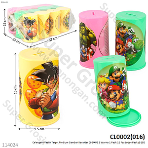 Celengan Plastik Target Medium Gambar Karakter CL-DX02 3 Warna 1 Pack 12 Pcs Loose Pack @192
