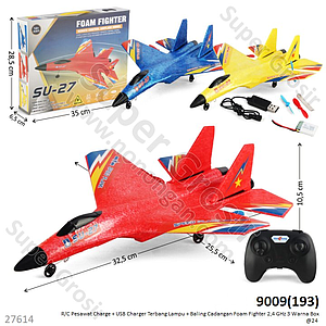 R/C Pesawat Tempur Charge + USB Charger Terbang Lampu + Baling Cadangan Foam Fighter 2,4 GHz 3 Warna Box @24