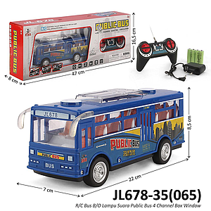 R/C Bus Charge + Charger Lampu Suara Public Bus 27 Mhz 4 Channel Box Window @32