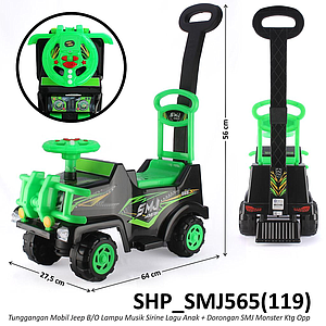 Tunggangan Mobil Jeep + Sandaran dan Dorongan B/O Sirine Musik Lagu Anak Lampu SMJ Monster Ktg Opp @4