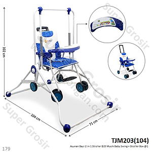 Ayunan Bayi 2 in 1 Stroller B/O Musik Baby Swing + Stroller Box @1