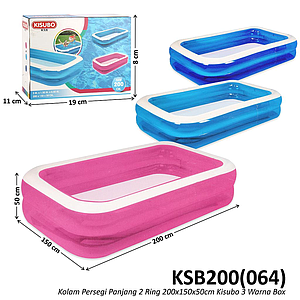 Kolam Renang Anak Persegi Panjang 2 Ring 200x150x50 cm Kisubo 3 Warna Box @6