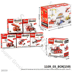 DIY Diecast Kendaraan Set 12 Pcs (2 SET) F/W Metal Creative SM20522 Box @36