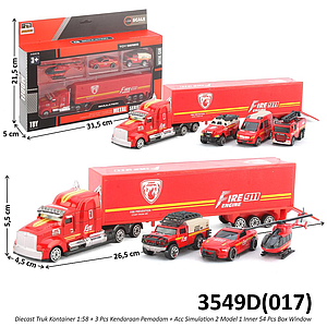 Diecast Kendaraan Damkar Set 1:58 Truk Kontainer 27 cm + Kendaraan 3 Pcs Simulation 2 Model 1 Inner 54 Pcs Box Window @108