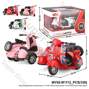 (ONLINE) Diecast Sepeda Motor Vespa Sespan 1:14 P/B Classical Moto Box Window @1