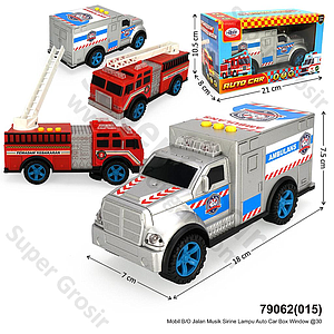 Mobil Ambulance B/O Jalan Sirine Lampu Super Powerful 1 Ikat 3 Pcs 1 Inner 72 Pcs Box Window @144