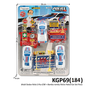 Mobil Polisi Set 3 Pcs F/W + Rambu-rambu Police Patrol Car Set Press @52