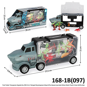 Koper Diecast Bentuk Truk Kontainer Kepala Hiu 28 cm F/W Isi Hewan Laut 4 Pcs dan Pohon Shark Truck 1 Inner 48 Pcs Box @96