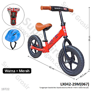 Tunggangan Sepeda Balance Merah Set Helm dan Deker Besi Box @1