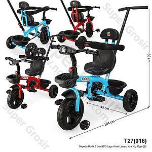 Tunggangan Sepeda Roda 3 Besi + Dorongan Sandaran dan Pengaman B/O Lagu Anak Lampu Iora Ktg Opp @3